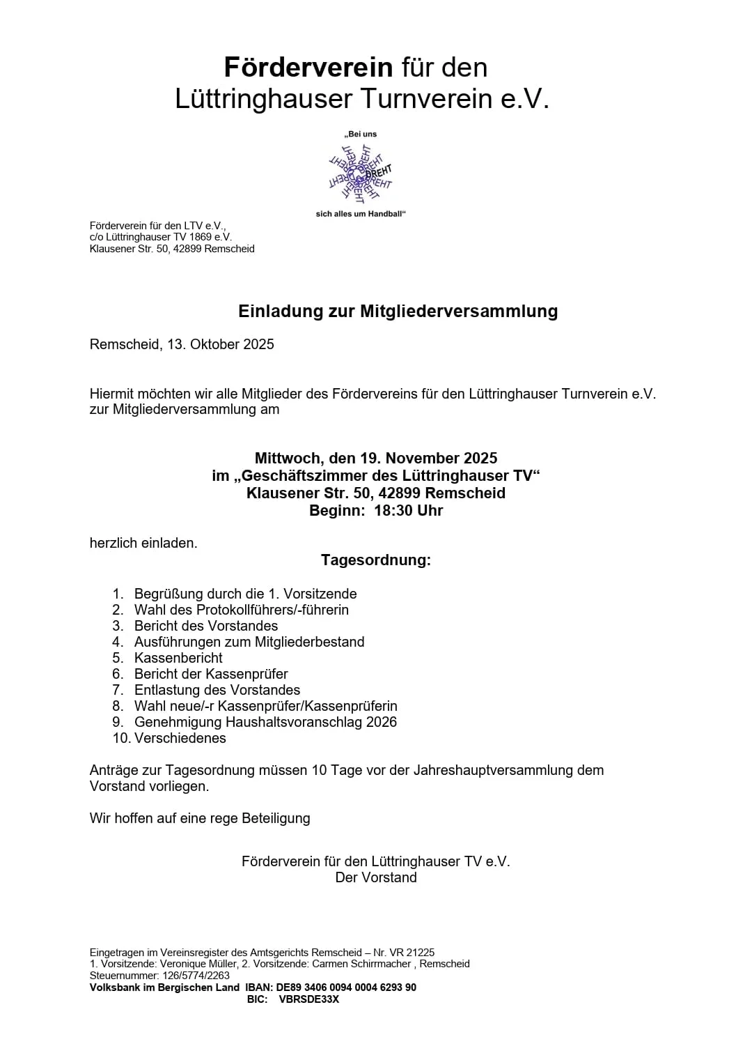 Die Jahreshauptversammlung des Lüttringhauser Turnvereins 1869 e.V. fand am 08. April 2024 statt und war ein wichtiger Anlass für die Mitglieder des Vereins. Mit 23 stimmberechtigten Mitgliedern anwesend, eröffnete der 1. Vorsitzende Jörg Adams die Versammlung, indem er die Ehrenmitglieder Marlis Koller und Anita Koslowski herzlich begrüßte. Er gedachte auch der verstorbenen Mitglieder Peter Stursberg und Rainer Timm, was die Verbundenheit und den Respekt innerhalb der Vereinsgemeinschaft unterstreicht.
